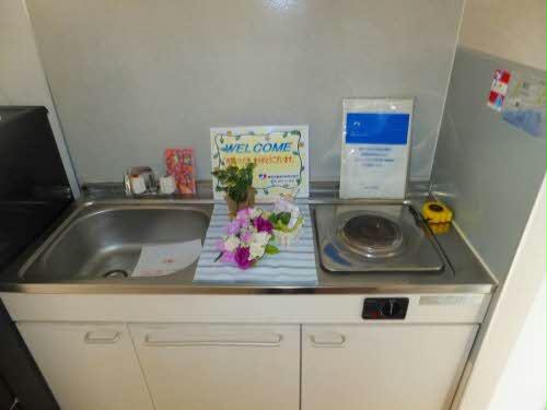 流し台はIHコンロ付き家電が付いてます (冷蔵庫・洗濯機・電子レンジ)トイレ温水洗浄便座設置無料Wi-Fi完備インターネットWiーFi導入物件、月額利用料は無料 家電付物件(冷蔵庫、洗濯機、電子レンジ)